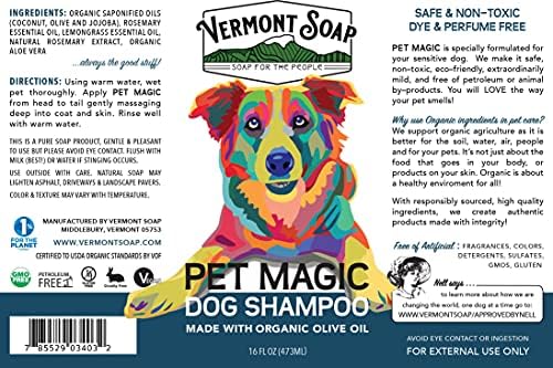 VERMONT SOAP Organics Pet Shampoo – Infused with Organic & Natural Olive Oil, Coconut & Aloe Vera Dog Shampoo for Sensitive Skin – USDA Certified Grooming Pet Shampoo
